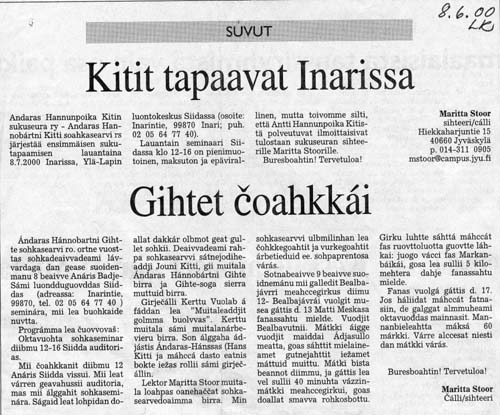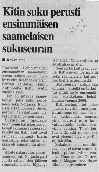 11.9.1998 Helsingissä vaalimaan Kitti-suvun ja saamelaisuuden