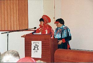 (vas.) ja saamentamassa kirjailija Kerttu Vuolab.